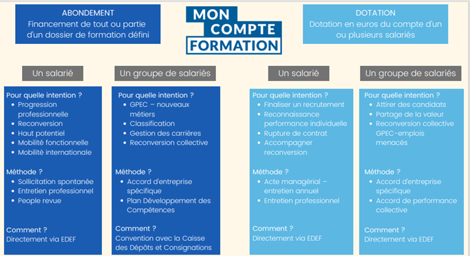– Enjeu : trouver un équilibre entre les obligations légales de l’entreprise, notamment par des mécanismes de co-financement et la liberté de l’individu de piloter son projet de formation comme il l’entend